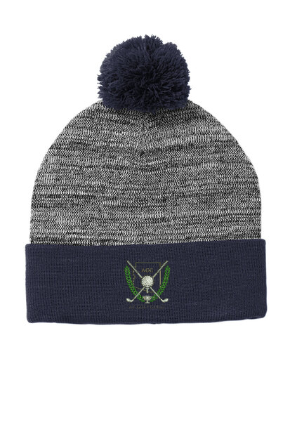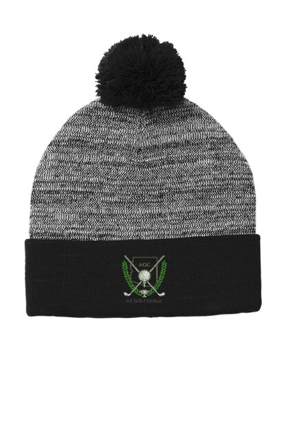 Sport-Tek heather pom pom beanie. Embroidered AGG logo.