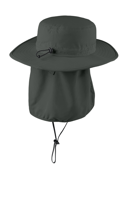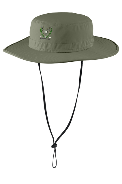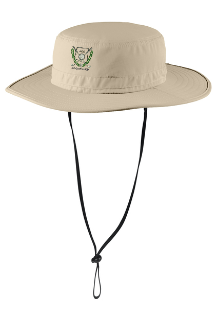 Trail-ready, this high-performance essential features No Fly Zone® insect repellant technology, UPF 30+ sun protection, a concealable sun flap and a moisture-wicking sweatband. The foam brim keeps it afloat in water. Embroidered AGG logo.
