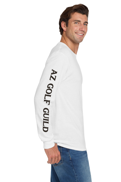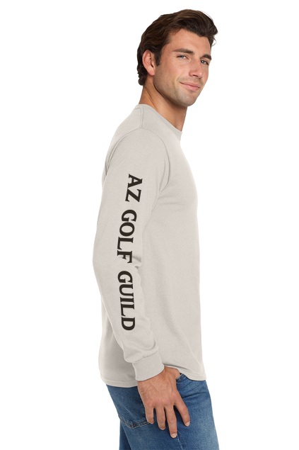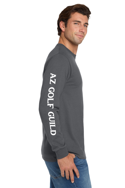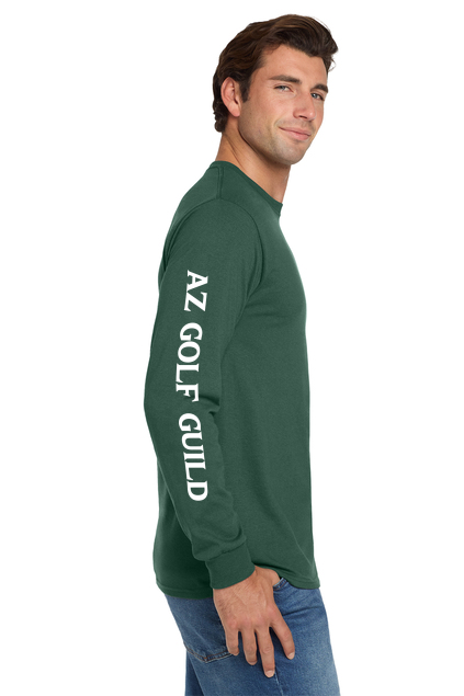Jerzees Dri-Power 50/50 Cotton/Poly Long Sleeve T-Shirt with AZ GOLF GUILD printed on right sleeve.