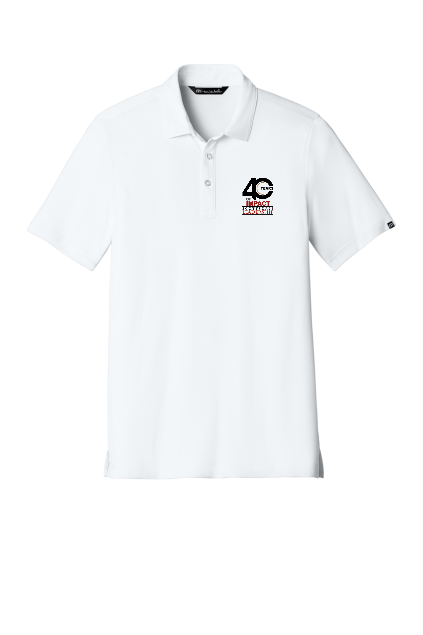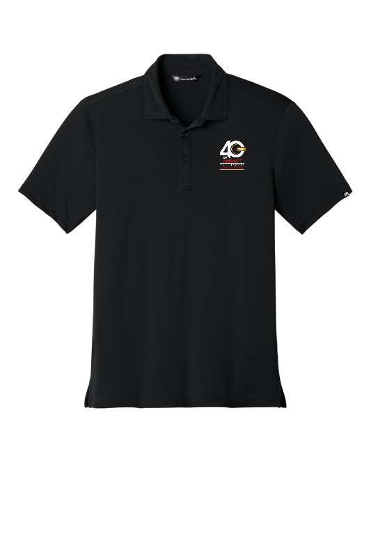 POPULAR TRAVIS MATHEW PERFORMANCE POLO EMBROIDERED WITH THE 40 YEAR LOGO.